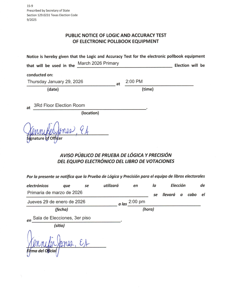 Notice of Logic and Accuracy Test of Electronic Pollbook Equipment 2025