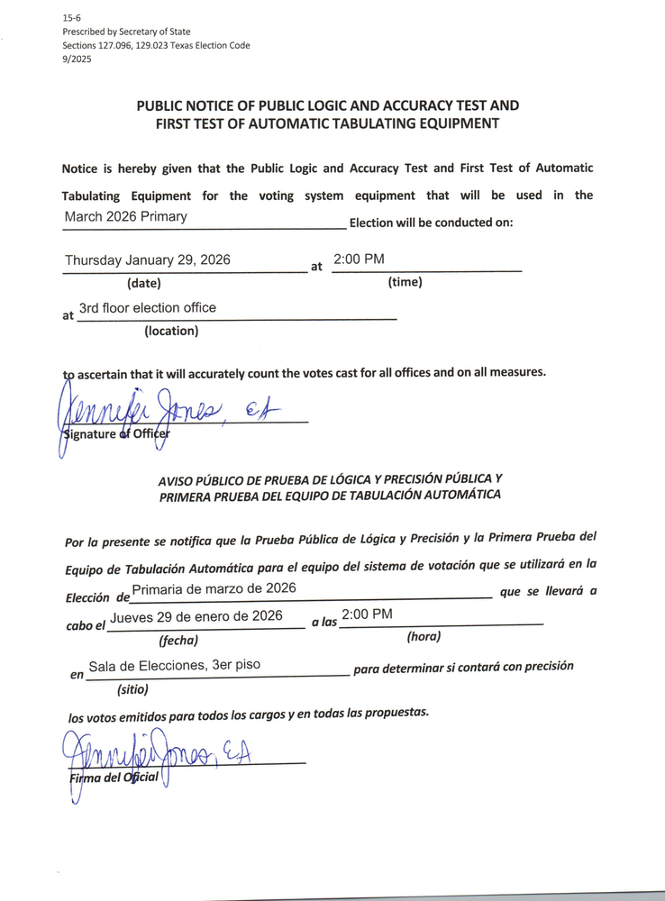 Notice of Public Logic and Accuracy Test and First Test of Automatic Tabulating Equipment 2025
